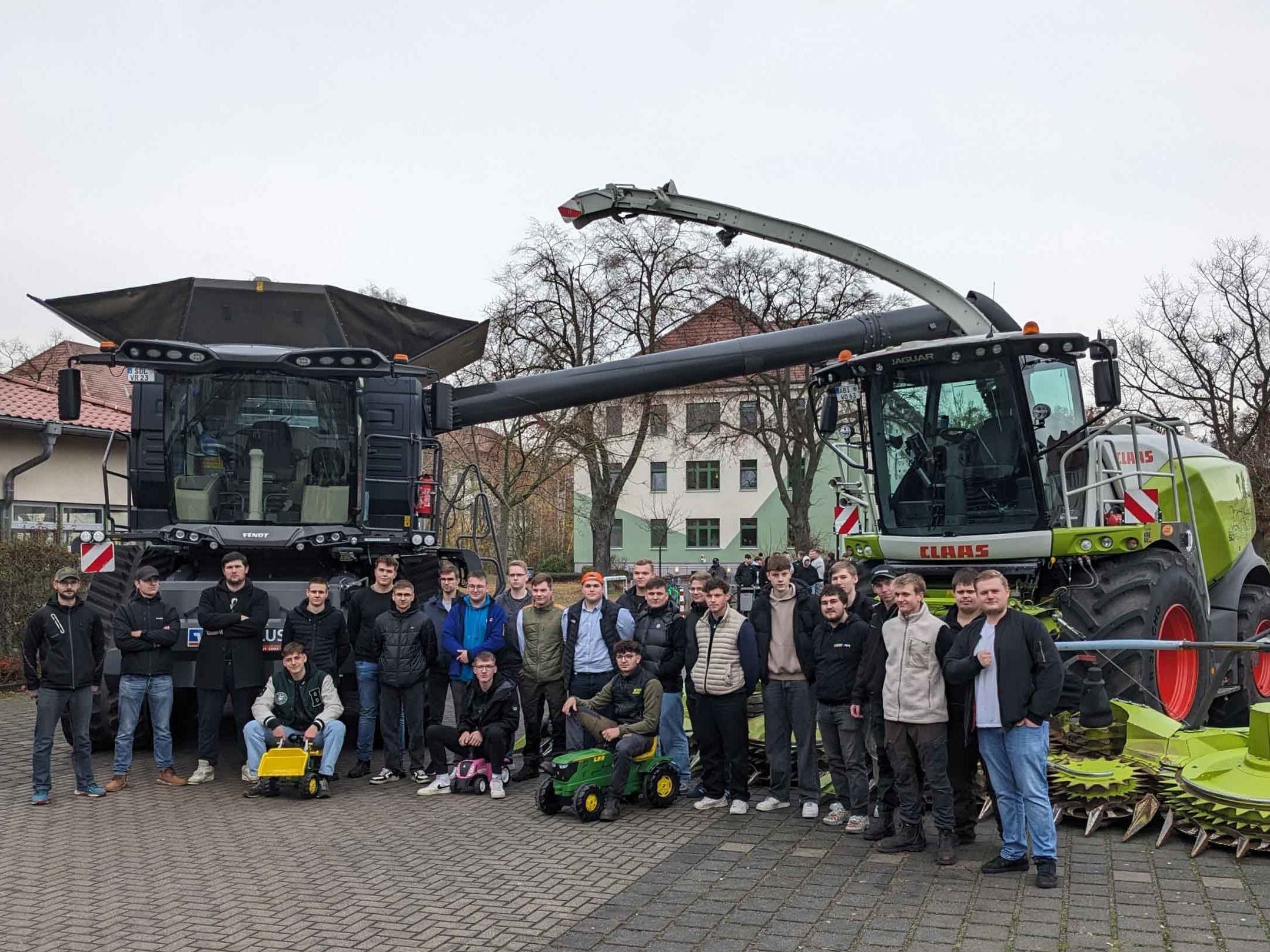 Ihren letzten Schultag am BSZ Stendal feierte die Abschlussklasse LBM22 der Land- und Baumaschinenmechatroniker auf ganz besondere Weise: Statt mit Bus und Bahn kamen die Auszubildenden mit Traktor, Mähdrescher und Co zur Schule.
